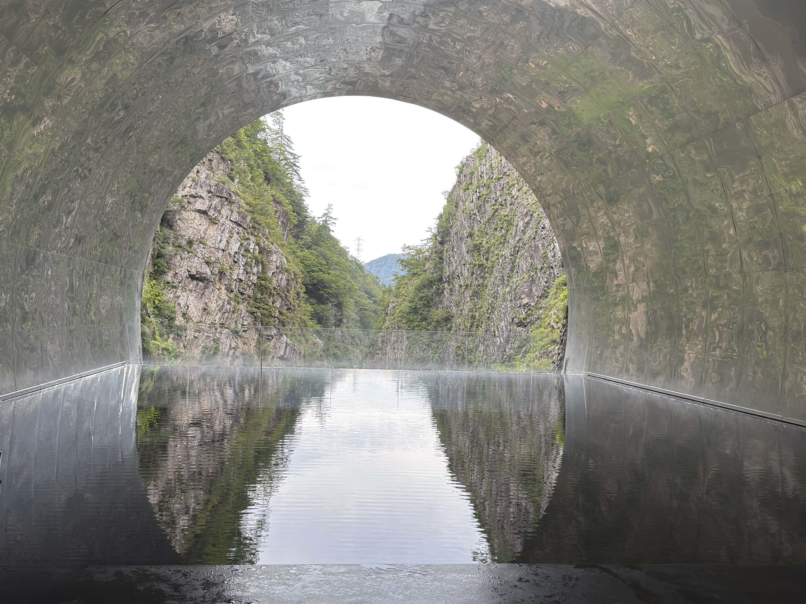 トンネルの最後に水が張ってあり、反射してきれいに撮ることができました。本来だったら、秋近くだと紅葉もきれいに見えるところでしたが今年は紅葉も遅いようでした。